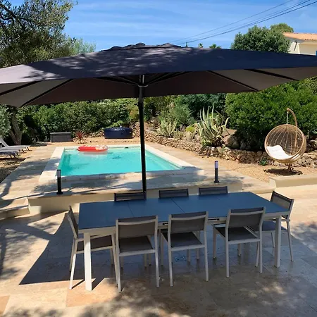 Vila Villa Calme je umístěna 4 km od Base Nature François Léotard, je 1-ložnicové ubytování s terasou. Vila nabízí soukromý plavecký bazén.